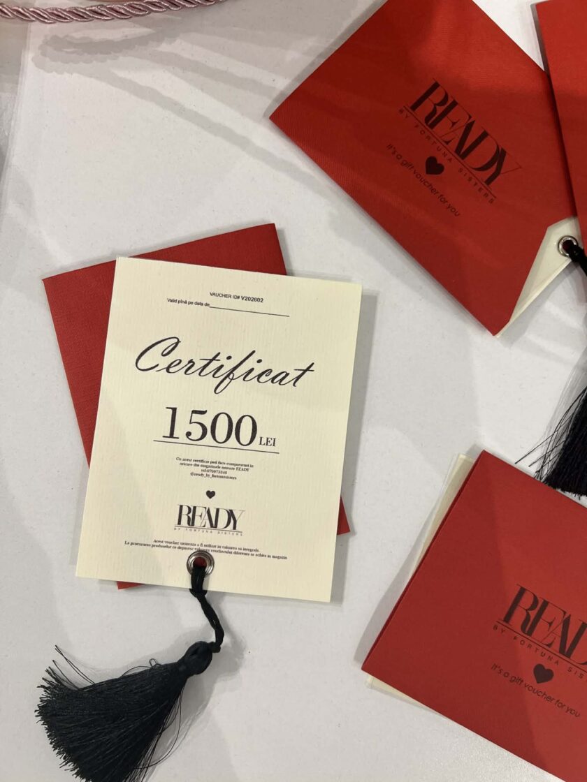 Știm că uneori este greu să alegi mărimea sau culoarea perfectă pentru cineva drag. Cu un Certificat Cadou READY by Fortuna Sisters, îi oferi posibilitatea de a-și completa garderoba cu piesele care o fac să se simtă cel mai bine în pielea ei.