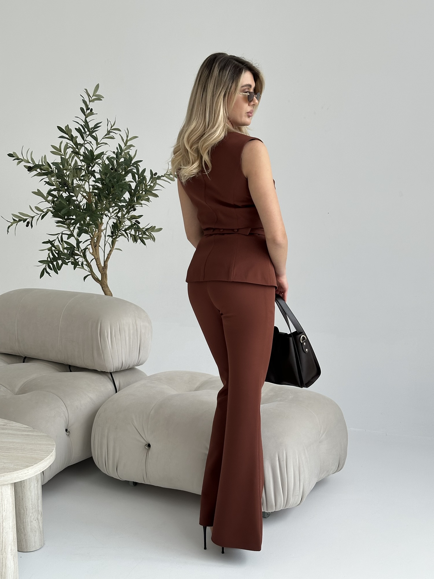 Pantalonii cleoșați creează efectul de siluetă alungită și feminină. Sunt potriviti pentru office / eveniment / ieșire.