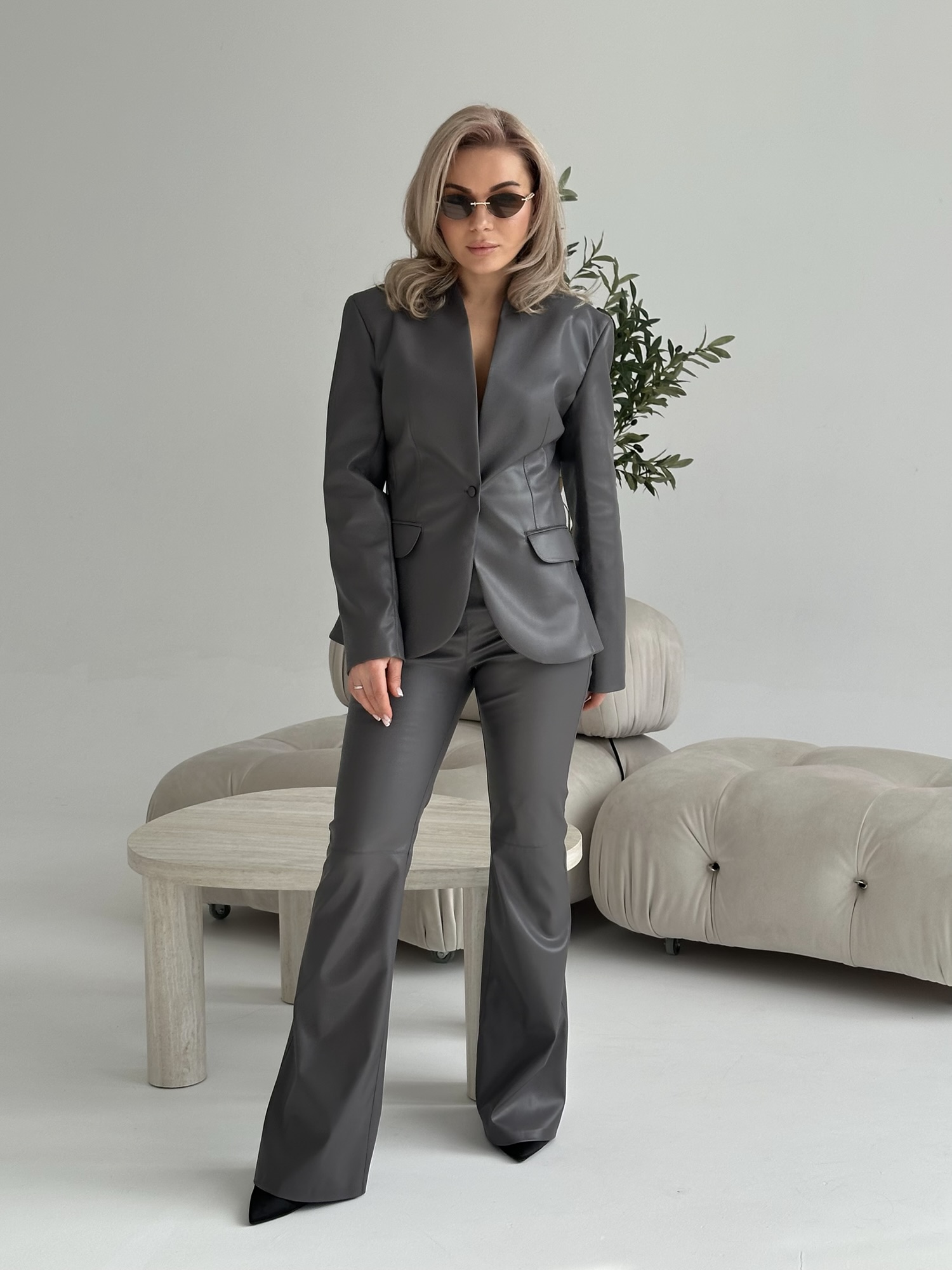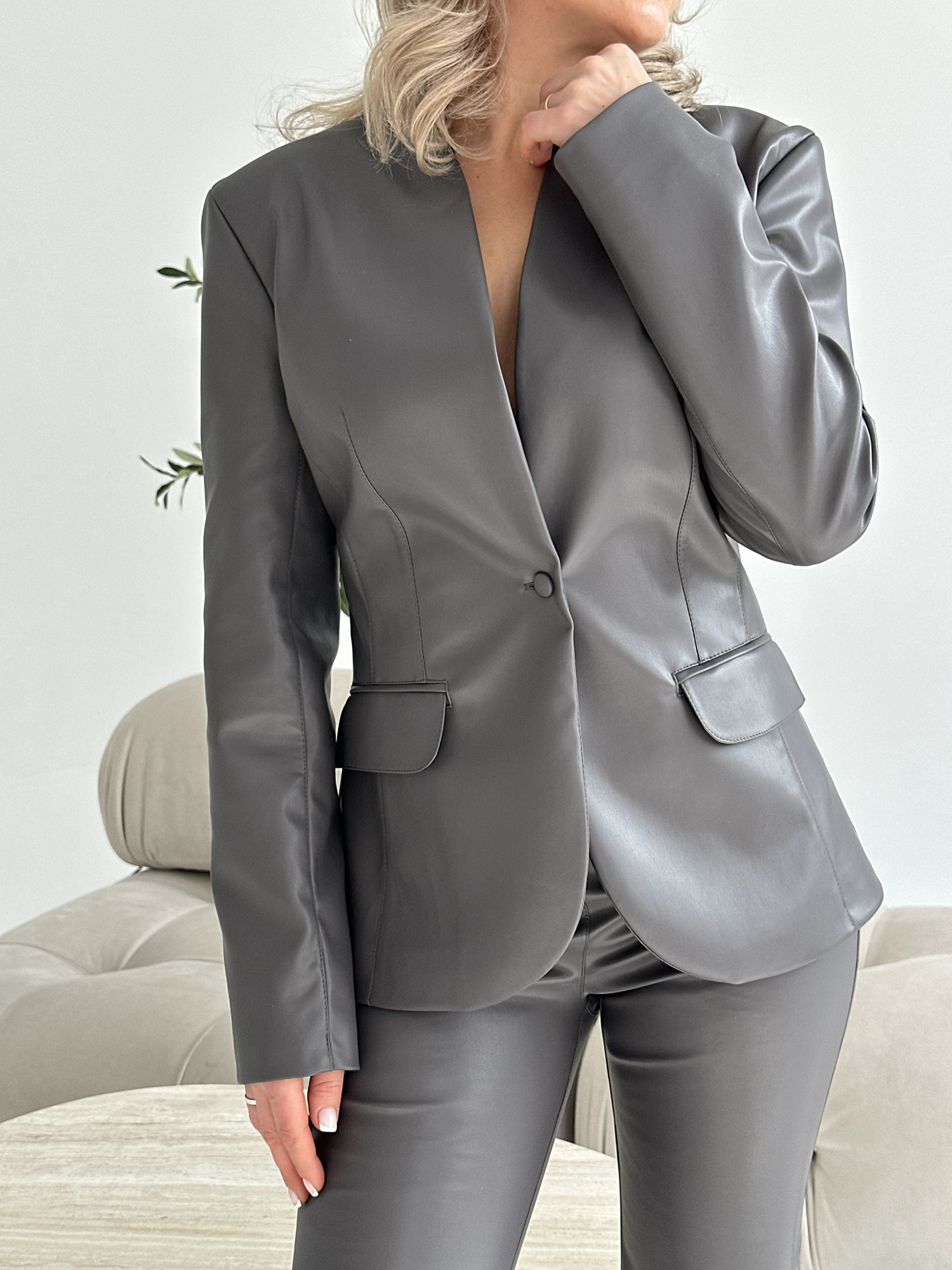 Realizat din eco-piele premium, cu o croială structurată ce evidențiază silueta, acest sacou poate fi purtat atât ca jachetă, cât și ca piesă clasică de styling.